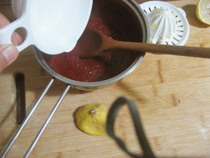 (9)レモン汁を加えて、弱火で数分煮る。
