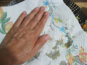 (11)最後にキッチンタオルで抑えて水気を取り、