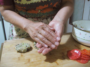 (18)手の中で押さえるようにして形を作る。