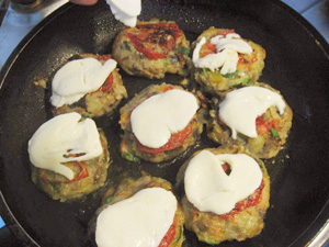 (21)裏返し、チーズをのせる。