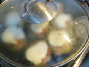 (3)中火で10分蒸す。