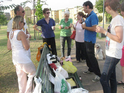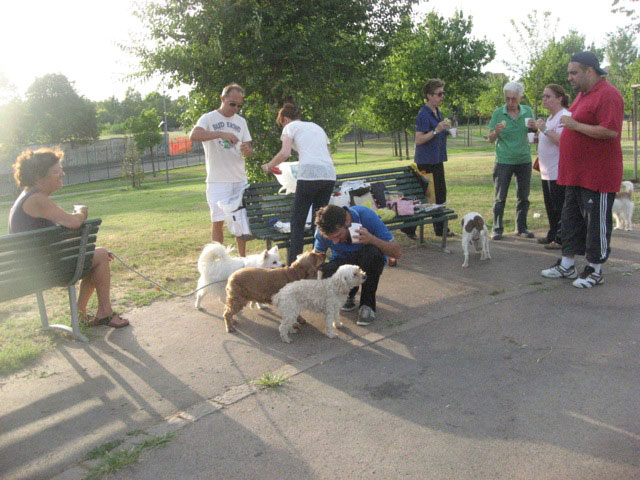 ▲親たちの団欒中、ワン達は自由に遊びます。