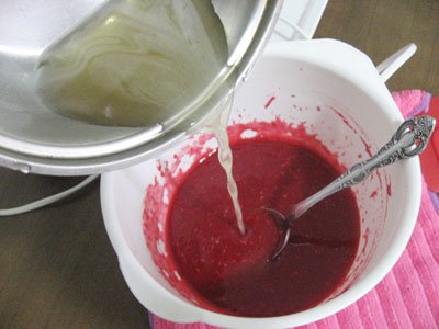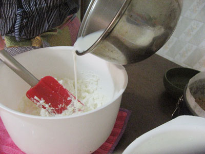 (10)(9)を(8)に全部入れてかき混ぜる。