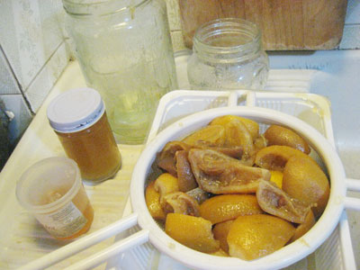 ビン:レモンの量にあわせて入るものを煮沸消毒しておく。