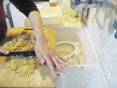(9)のレモンソルト用に分けた分の汁気をよくきる。