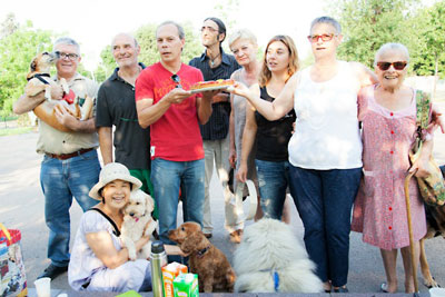 ▲中央の赤いTシャツ姿のダビデ、本日で57歳!