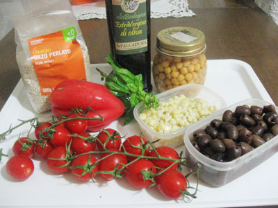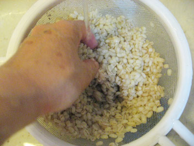 (1)塩入りの水で麦が柔らかくなるまでゆでる。