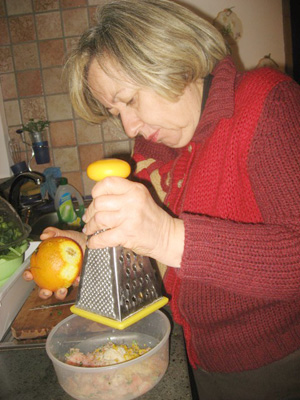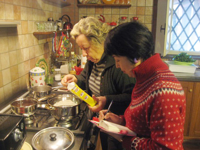 ![]() 昨年末に夫がプレゼントしてくれた旅行、 「アートレジデンスNake」で過ごした、 バカンスの様子の一部をご紹介します。 シチリア島のカターニャと タオルミーナの間に位置する街・リポストから、 オレンジ畑やレモン畑を見ながら登って行くと 標高700mのエトナ火山の麓の村、 サンタルフィオに着きます。 その村に「アートレジデンスNake」があります。 ベランダからの景色は、後ろ側にはエトナ山、 眼下には海が見え、 火山に抱えられた海の景色が絶景です。 まず、「アートレジデンスNake」のご家族を ご紹介しましょう。 ![]() ▲パパ サルボ(71歳)。 元高校の校長で、退職後はこのレジデンスの オリーブ、葡萄、リンゴ等々の農作業をしています。 ママ リータ(63歳)。 元教育委員会の理事。今は娘の活動を助けています。 息子 カルメッロ(35歳)。 カターニャで事務系に従事。 娘 ニッラ(31歳)。 ローマでアートキュレターとオルガナイザーを経て 地元に戻り、このレジデンスの運営と 街の活性化の企画をしています。 ![]() ▲入り口には、エトナ山の火山灰を使って描いた 夫の絵が飾られています。 ![]() ▲お料理好きのリータが、 毎食、家庭料理を伝授してくれました。 ![]() ▲柑橘類やナッツ類をたくさん使う料理の数々。 「ライトな仕上がりにしているの」と 家族の健康を考えてのメニューです。 オリーブオイルは少しずつ足して、 最後に生の状態でかけます。 材料は彼らの農作物や 友人が作っている物ばかりで、 土地の香りと味を満喫できました。 ![]() ▲ニッラとヨットハーバーで。 ![]() ▲私達が行く前日に噴火がありました。 街中が噴火灰で覆われて、街の色が変わります。 ![]() ▲エトナ山標高1500mのところ。 なんとこの日は5年ぶりの雪。 溶岩に積もった雪の上を、 滑らないように気をつけて歩きました。 溶岩の上をたどたどしく歩くことは、 なんだか、人生の歩みを彷彿とさせますが、 雪があることが新鮮で、 新しい歩みのスタートのように感じました。 ![]() ▲カウントダウンで新年を迎えると、 まず、塩をまきます。 日本のお清めに似ていますね。 ニッラによると、この地の会話は、 「どこに行ったの? 何をしたの? 」より 「何を食べたの? 」から始まるそうです。 本当に私には最適なところです。 そして、お客としてではなく、 家族一員としての迎え入れてくれた 彼らのさりげないおもてなしが、 私をリラックスさせてくれました。 さて、今回はリータに教えてもらった エビのレモン葉焼きをご紹介します。 日本でしたら他の柑橘類で、 おいしくできると思います。 簡単ですから、ぜひ、お試しくださいね。