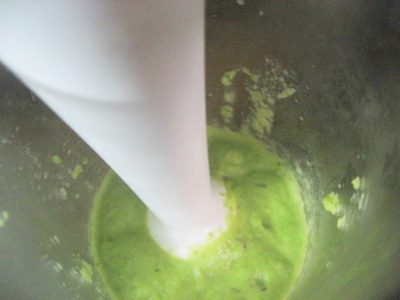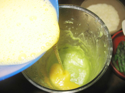 (5)アスパラをバーミキサーで