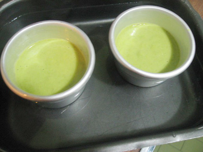 (8)バターを塗ったプリン型に入れる。