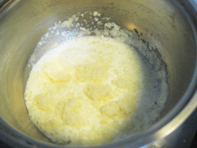 生クリームにパルミジャーノを入れ、煮溶かす。