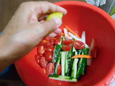 塩とレモンを入れて、さっとかき混ぜる。