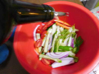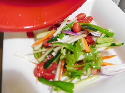 (2)切った野菜をボールに入れて