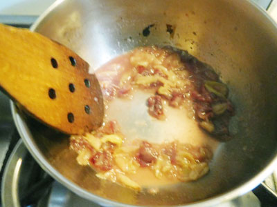 (8)とろみがつくまで弱火でゆっくり煮る。