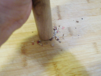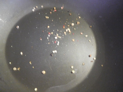 (7)火を止め、ペコリーノ・ロマーノを入れて、