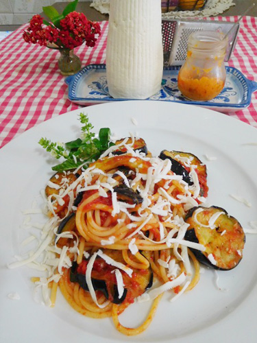 リコッタサラータチーズをたくさんかけてどうぞ。