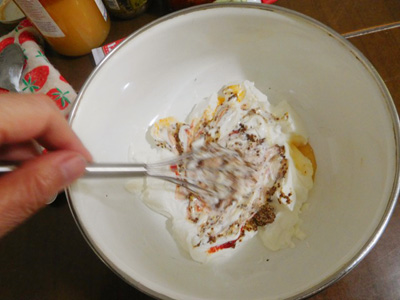(2)ボールにギリシャヨーグルトを入れる。