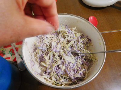 (6)塩を入れて味を整える。