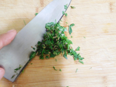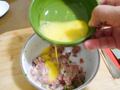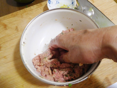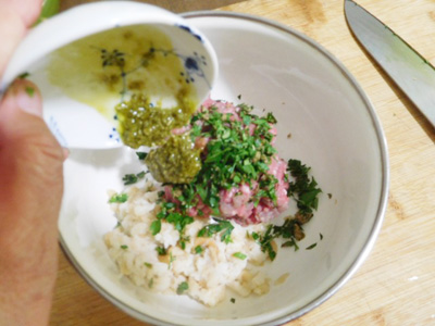ジェノベーゼ、肉を入れてかき混ぜる。