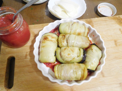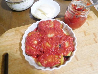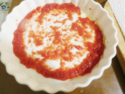(9)耐熱容器に薄くオリーブオイルを敷き