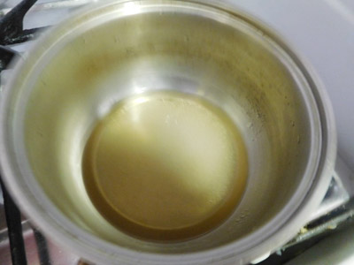 (2)EVオリーブオイルを入れた鍋で
