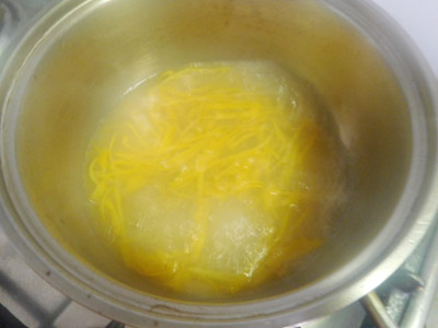 (9)オレンジの皮を入れる。