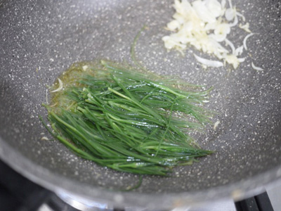ゆでアグレットを軽く炒めて取り出す。