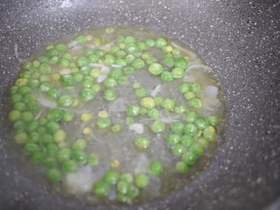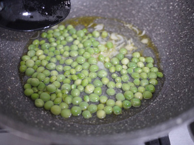 フライパンにグリーンピースを入れて