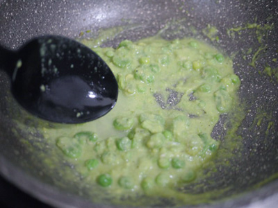 残しておいたグリーンピースを鍋に入れる。