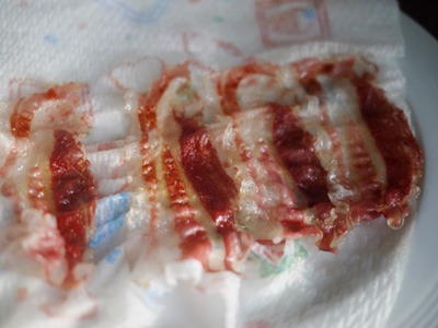 (16)ベーコンはキッチンタオルに包み