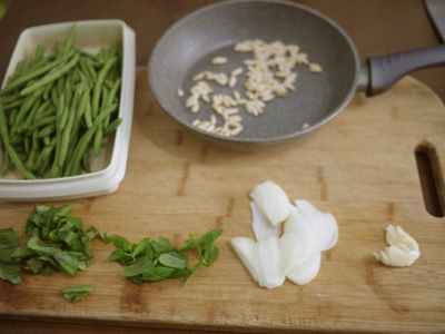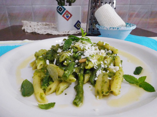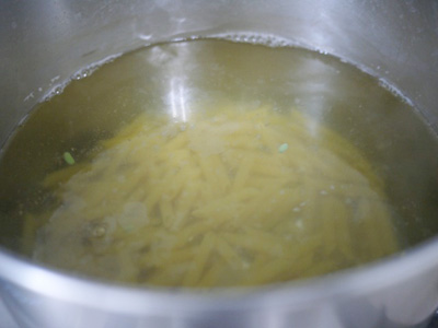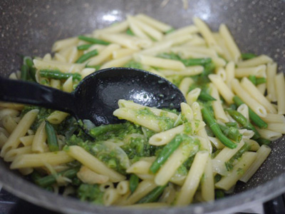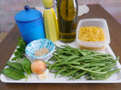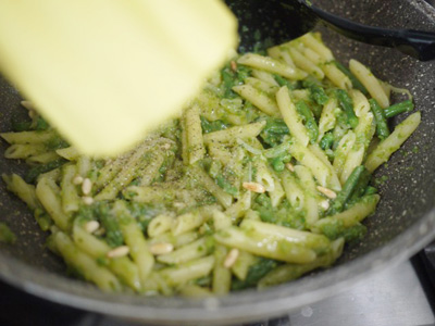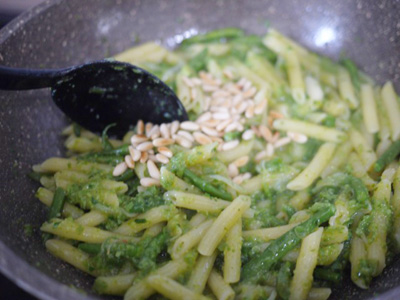 さて、今回は細ペンネのインゲンソースと松の実です。