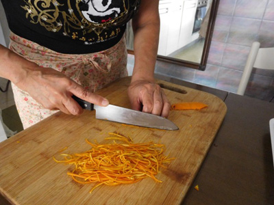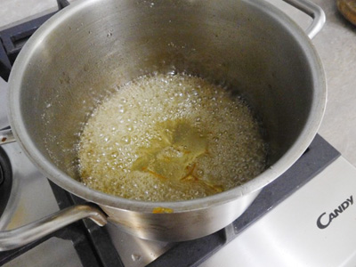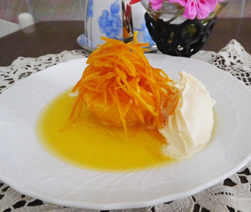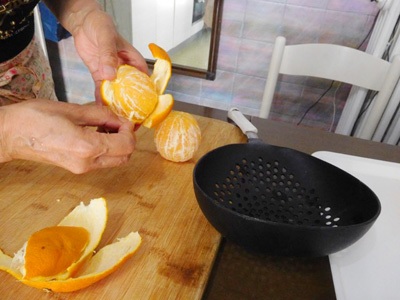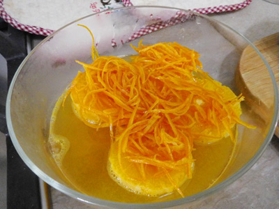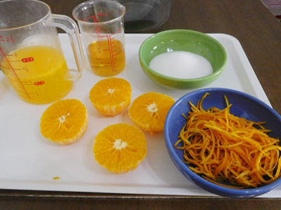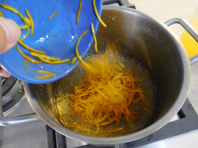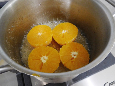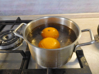・沸騰したお湯にオレンジ2個を入れて1分ゆでる。
