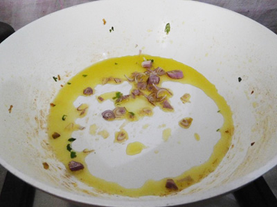 (6)同じフライパンにEVオリーブオイルを入れ