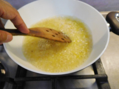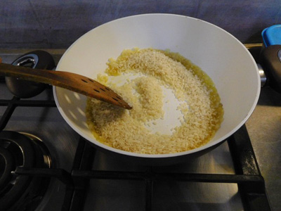 ブイヨンを入れてアルデンテ少し前までに煮る。