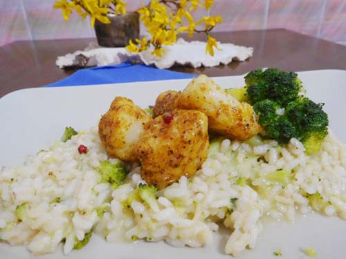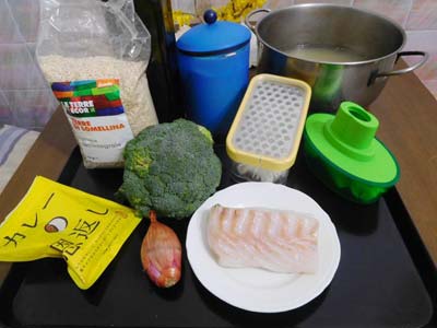 リゾットの上にカレー味の鱈をのせて