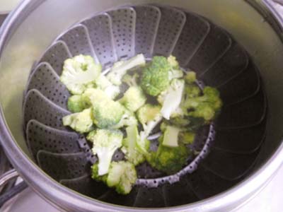 ・ブロッコリーの実の部分をかために蒸す。