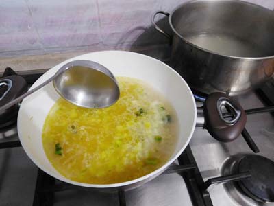 コンソメをお米が隠れるぐらいに入れて