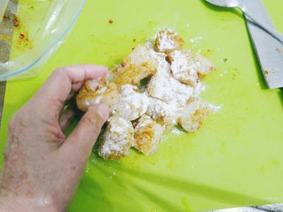 一口大に切って小麦粉を