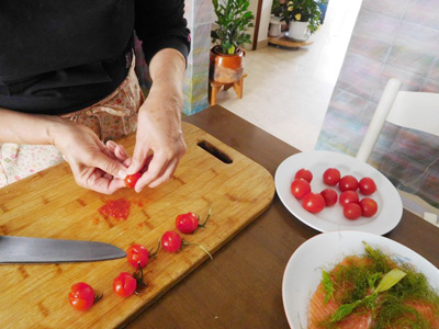 飾り用にサーモンを6個取り除く。