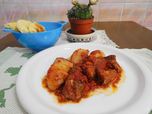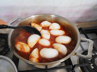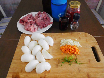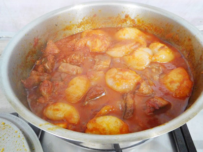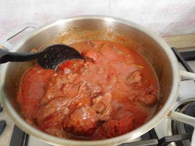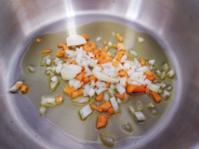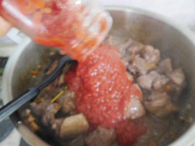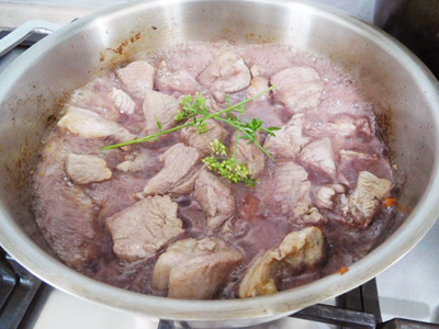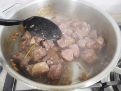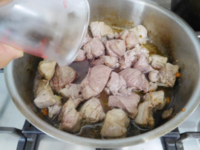 (2)野菜がしんなりしてきたら肉を入れて炒める。