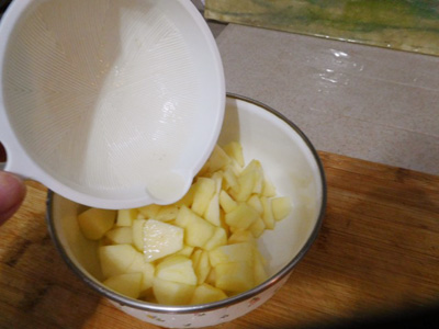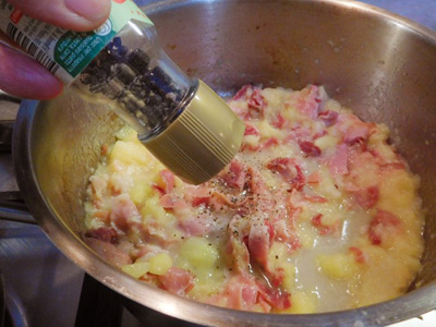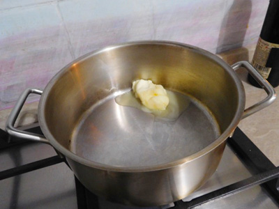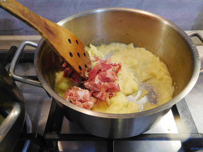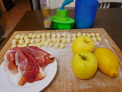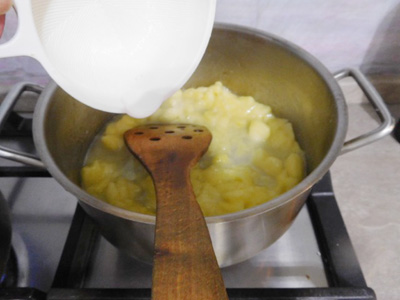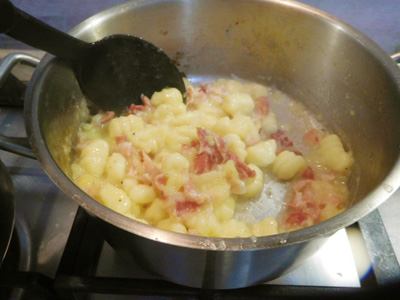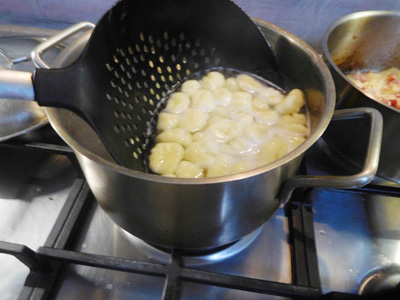 ゆで汁も少し入れる感じでニョッキを入れる。