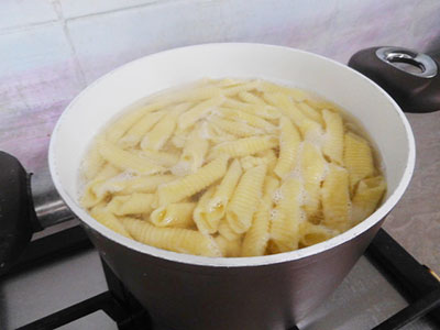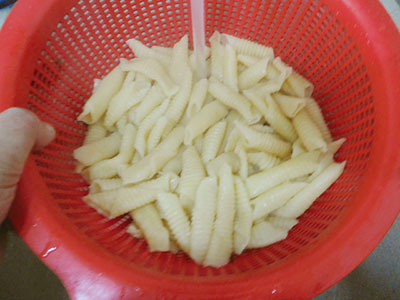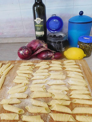 ショートパスタ:350g(今回はセモリナ粉の生パスタ)