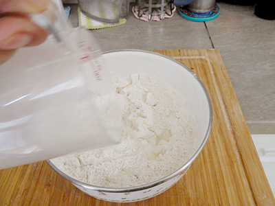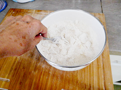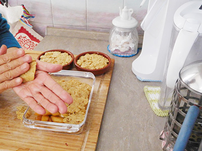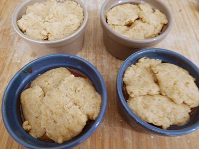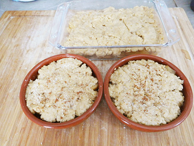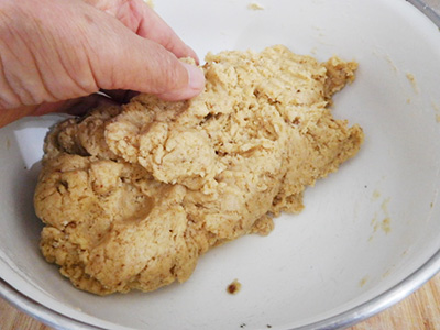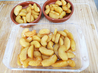 手で薄く伸ばしてリンゴの上にかぶせる。