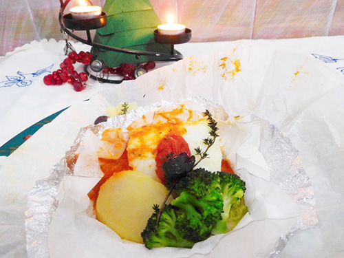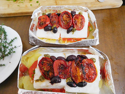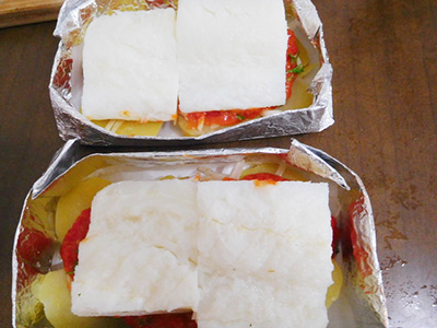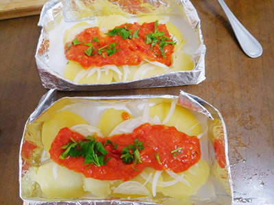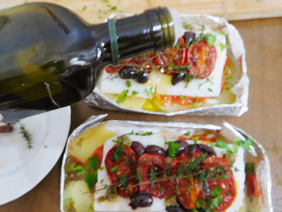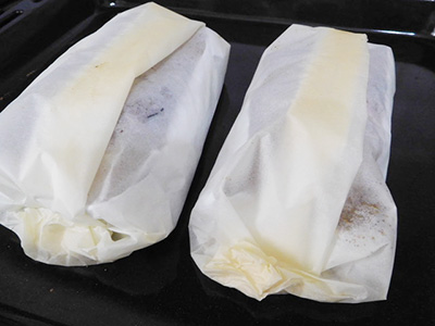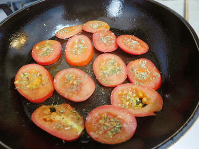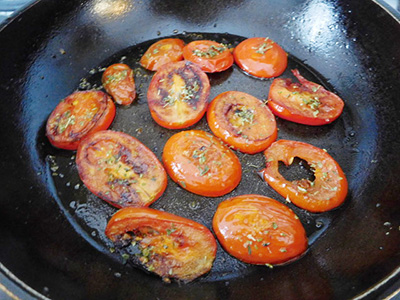 オレガノと塩、砂糖少々を振りかけて弱火で焼く。