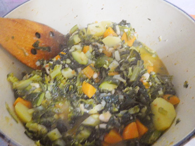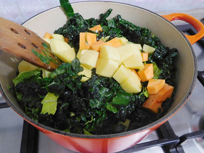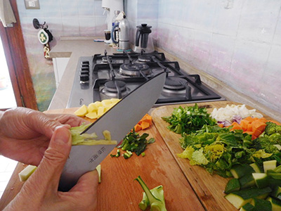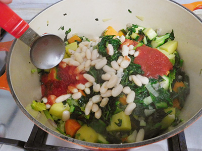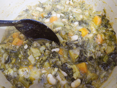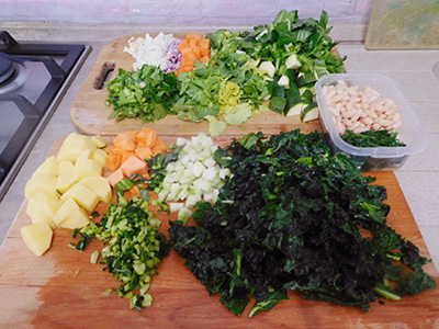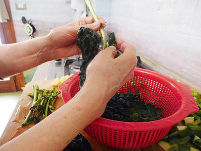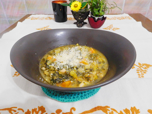 ![]() 私は年配者の友人から話を聞くのが大好きです。 特に料理の話になると興味津々で聞き入ります。 料理の仕方はもちろんのこと、 素材との向き合い方に 脱帽するときが往々にしてあります。 彼女らの根源は「もったいない精神」ですので 使える部分は工夫しながら使います。 よってゴミも減ります。 そしてなによりも発見して、工夫するという 楽しみを教えてもらいます。 今日ご紹介するのはミネステローネ。 レシピその2で紹介したものとは違う、 彼女らのもったいない精神が加味された ミネステローネをご紹介します。 リエティでは食べていなかった北部の野菜、 黒キャベツなども冷蔵庫にありましたので、 それも入れました。 「なんでもある野菜を入れなさい」というのは 青果市場でお店を持っていたドナータの一言。 「野菜の芯や葉脈も掃除して使いなさい」 「食べられる野草も入れていたのよ」とアントニア。 確かに彼女がいうように、 その土地の野草が入ると その地方のミネストローネの味になります。 今回はとろみのあるスープを作りたかったので 炒める時間をゆっくりと長くして、 豆とお芋類を入れて 煮崩してとろみをつけます。 サラッとしたものを作りたいときは、 炒める時間を短くして水分を多くします。 必ず入れるものはタマネギ、ニンジン、セロリです。 香辛料はお好みです。 足したり引いたりして作り、 その日に食べたい濃度や味に仕上げる。 それが家庭料理の醍醐味ですね。 翌日、煮詰まったスープを伸ばし、 残ったパンなどを入れて、 もう一度煮込んだりもします。 生活の知恵満杯です。 物がなかった時代の人から聞く話は 料理の基本にもつながっていき、 本当に興味深いです。 そして、その知恵は知識として 今のこの時代の日常にも生かしていきたい と思っています。 さて、今回のミネストローネ。 皆さんも冷蔵庫の大掃除と思って、 ある物で作ってみて下さい。 思いがけない味との出会いがあるかもしれませんよ。 なんでもミネストローネ、お楽しみ下さいね。