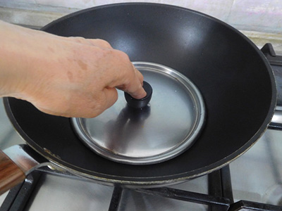 フタを使って裏返し焼く。