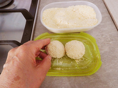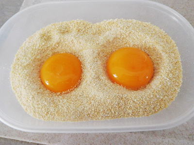 ・黄身をパン粉に入れて