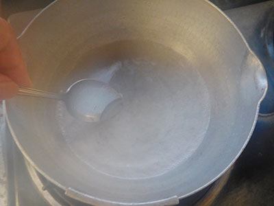 (3)お湯を沸かして寒天を入れ、