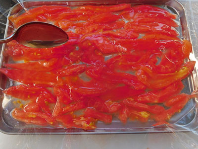 (4)バットにトマトを並べ(3)をかけ、