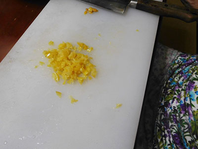 (6)塩レモンは種を取り除いて微塵切りにする。